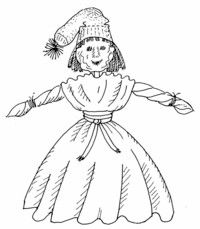 To make this doll, peel a medium-sized apple (you may need adult help for this). With your fingers, press in eyes, a nose and a mouth into the apple. Let the fruit dry in a cool, dry place for about 2 weeks until it is brown and small.