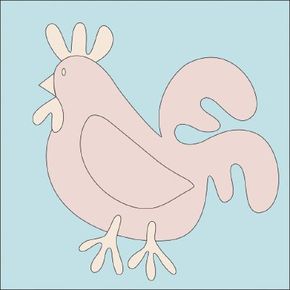 Fuse rooster body to background square. Fuse beak, comb, wattle, wing, and feet to rooster. By hand or machine, appliqué all fused pieces using narrow blanket stitch.