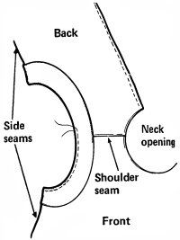To take in a shirt or the bodice of a dress, you may have to remove the sleeves and adjust the side seams. In this case, to prevent changing the shape of the sleeves, open the side seam to the waist and make a paper pattern of the armhole, as above; mark the sleeves as you remove them so you'll be able to replace them correctly. After adjusting the garment's seams, use the pattern to cut the armhole to its old shape, as necessary. Then restitch the side seams and replace the sleeves.