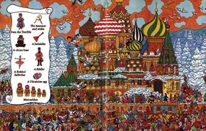 Then, in a flash, Marie and Prince Nutcracker are back in a snowy scene -- Russia. As cossacks dance, see if you can find a variety of uniquely Russian items.