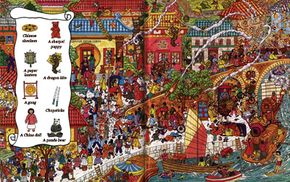 Needing to warm up, Marie requests a cup of tea and finds herself in China. Find the Chinese items scattered in this bustling scene.